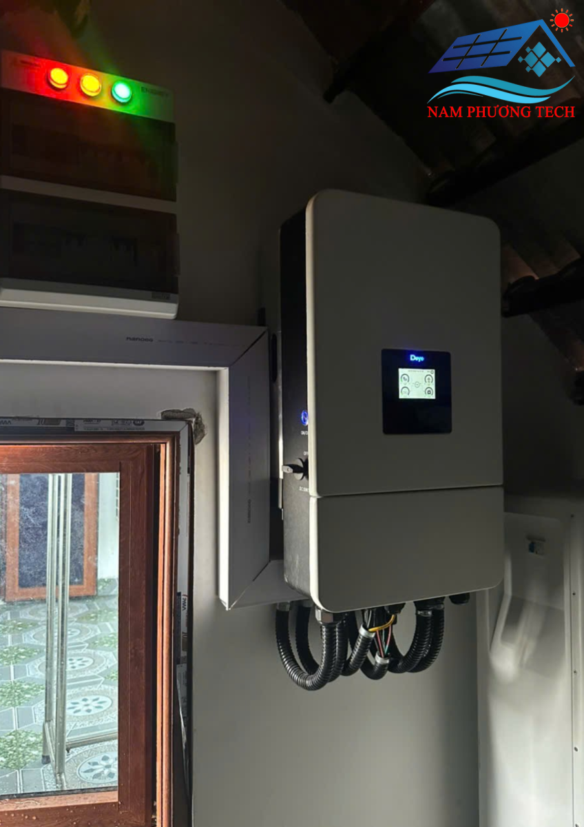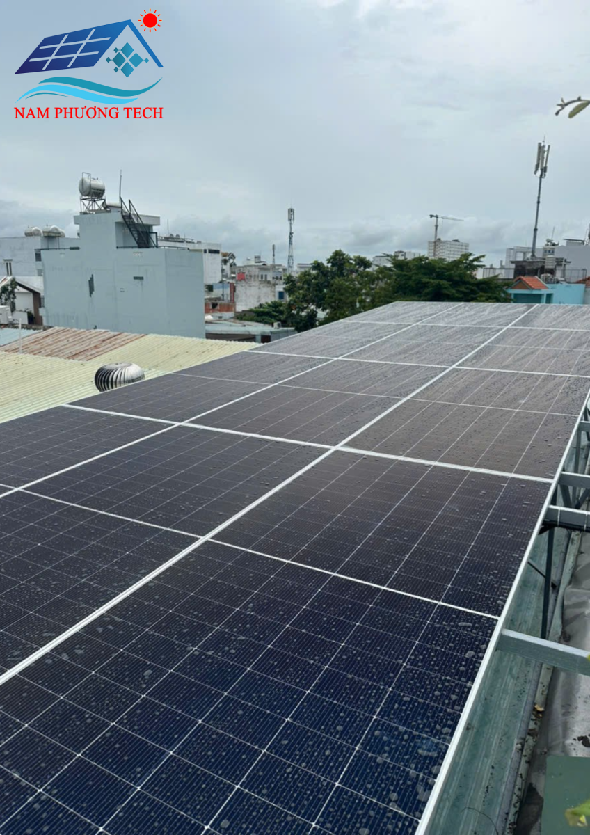 Nam Phương Tech vừa hoàn thiện hệ thống điện mặt trời công suất 12kW 3 pha, kèm theo bộ lưu trữ điện 14.3kWh cho một hộ gia đình kinh doanh tại Tân Bình.