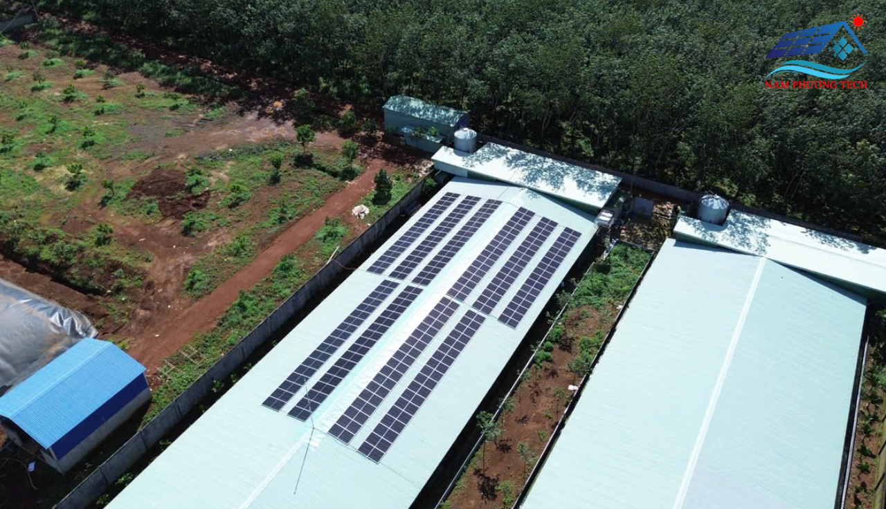 Vị trí lắp đặt: Trên mái nhà xưởng trang trại, tận dụng không gian hiệu quả