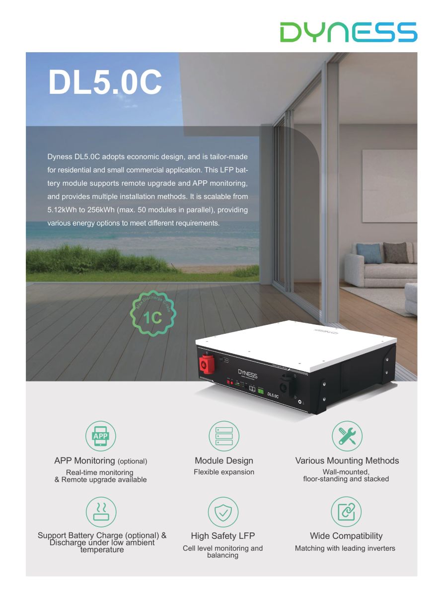 Dyness DL5.0C là dòng pin lưu trữ lithium-ion chất lượng cao, được thiết kế chuyên biệt cho các hệ thống điện mặt trời dân dụng và thương mại. Với dung lượng lưu trữ 5.12kWh, sản phẩm mang đến giải pháp lưu trữ năng lượng hiệu quả – an toàn – linh hoạt, đáp ứng xu hướng chuyển dịch sang năng lượng tái tạo và giúp tối ưu chi phí điện năng trong dài hạn.